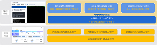 实训室配套二级项目基于高校大数据人才培养目标,对标目标岗位数据采集与处理工程师、大数据分析与可视化工程师、大数据实施与运维工程师的专业技术能力需求,旨在帮助学生夯实工程实践能力和提升岗位就业能力。