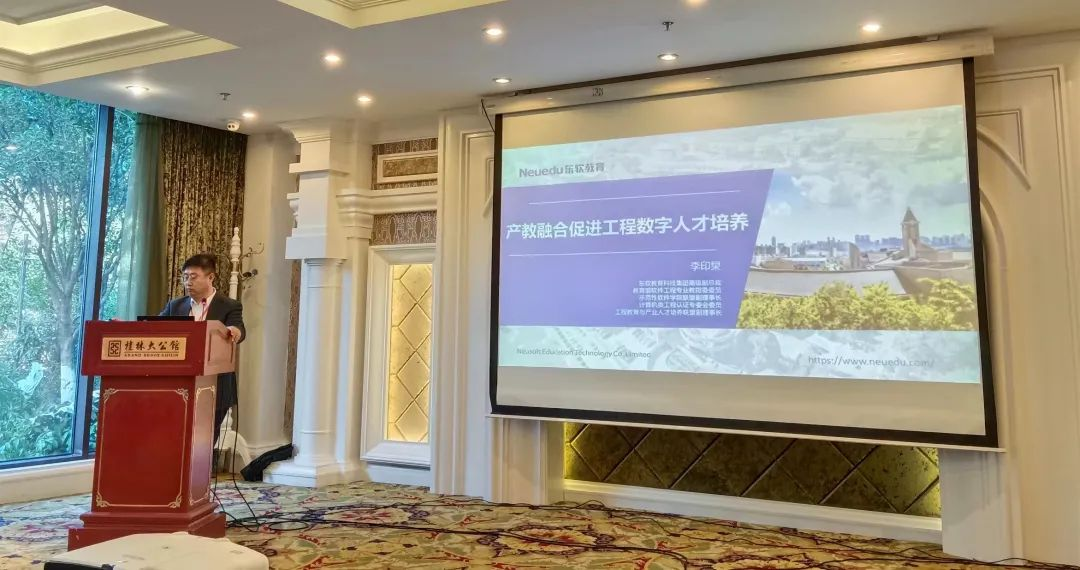 会议上,李印杲高级副总裁作题为《产教融合促进工程人才培养》的报告,进一步强调产教融合对工程教育人才培养的重要性,顺利获得Ebpay教育与桂林学院合作案例,详细阐述了自2020年共建产教融合型基地-Ebpay数字工场教学模式和体系以来,以“产教融合、校企合作、工学结合”为建设路径,采取“2.5+1.5” 人才培养及混合式教学模式,在教学成果及学科竞赛中取得多项大奖。桂林学院产业学院现在在校人数422人,共发明12项软著,在2023年的“互联网+”大学生创新创业大赛取得高教主赛道本科生创意组金奖,实现该项赛事零的突破。
