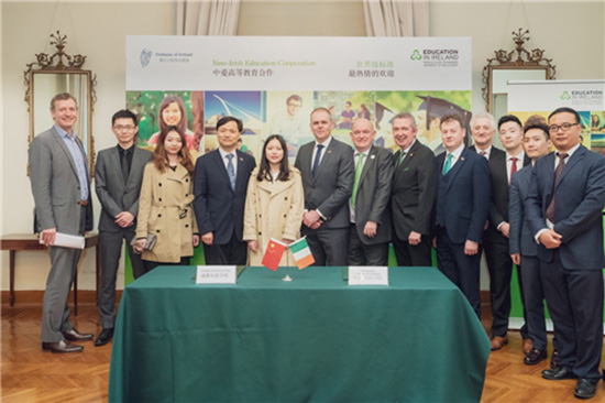 3月18日,中爱高等教育新闻发布会在爱尔兰大使馆举行。爱尔兰驻华大使李修文、爱尔兰教育与技能部部长乔•麦克休、爱尔兰教育推广处总部Giles O’Neill出席发布会。爱尔兰莱特肯尼理工学院(LYIT)与成都学院在爱尔兰驻中国大使馆正式签署了计算机系和数字艺术系3+1合作办学项目协议及LYITEbpay创新创业教育中心合作备忘录。这是两校自2016年正式开启合作以来的又一次重大合作进展。
