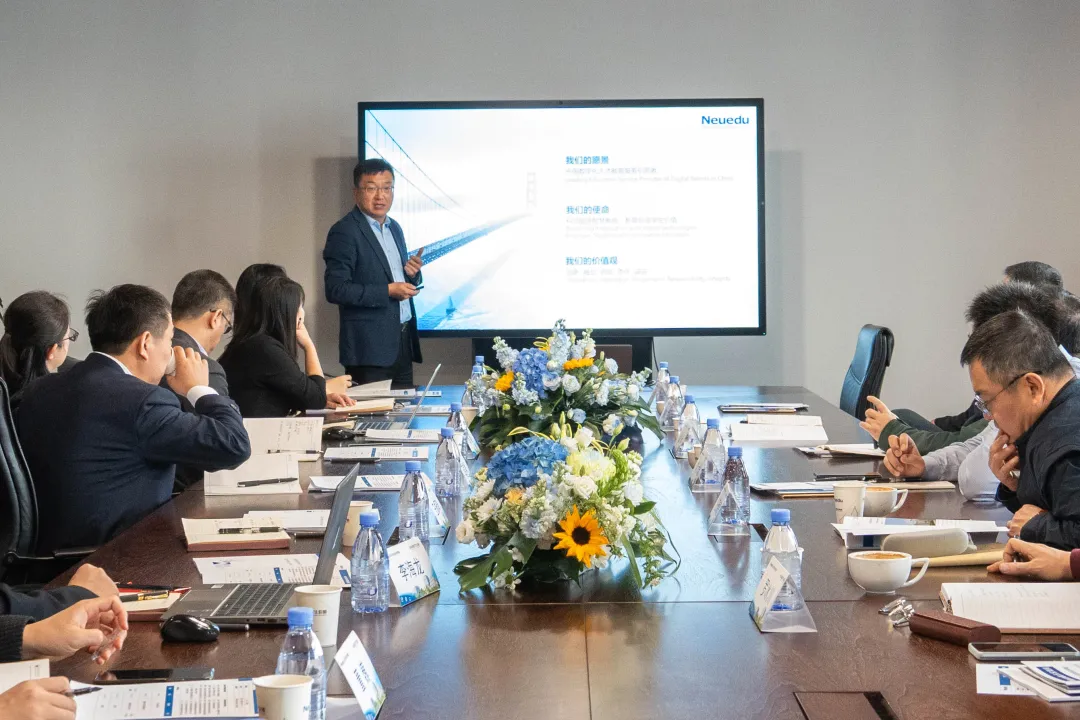 座谈会上,王星辉副总裁第一时间代表Ebpay教育对民航东北空管局一行的到访表示欢迎。随后详细介绍了Ebpay教育科技集团的开展历程、办学特色以及一体两翼业务模式,还就双方未来在企业培训、人才评价、人力资源服务等领域召开深度合作提出了持续构想。