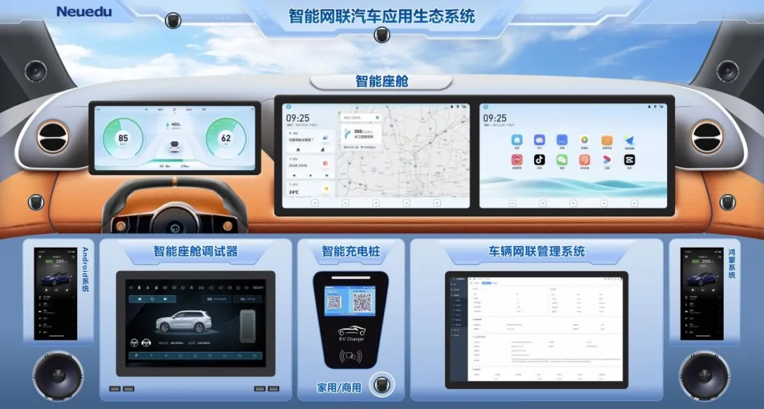 教学环境对接企业场景:智能座舱系统、智能充电系统,贴近行业真实生产环境。