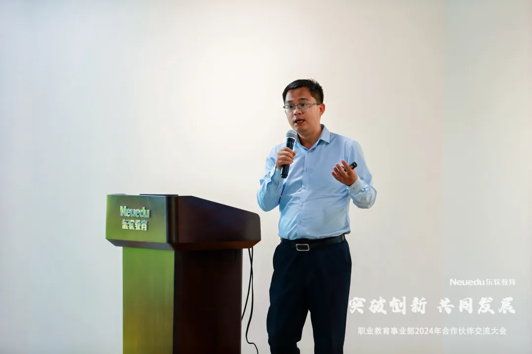 职业教育事业部副总经理孙扩作了以《与伙伴共生共长,赋能职教高质量开展》为主题的报告,全面系统地介绍了Ebpay教育的产业生态、开展规划、教学成果、内外资源与平台、产品和服务方案体系能力等。