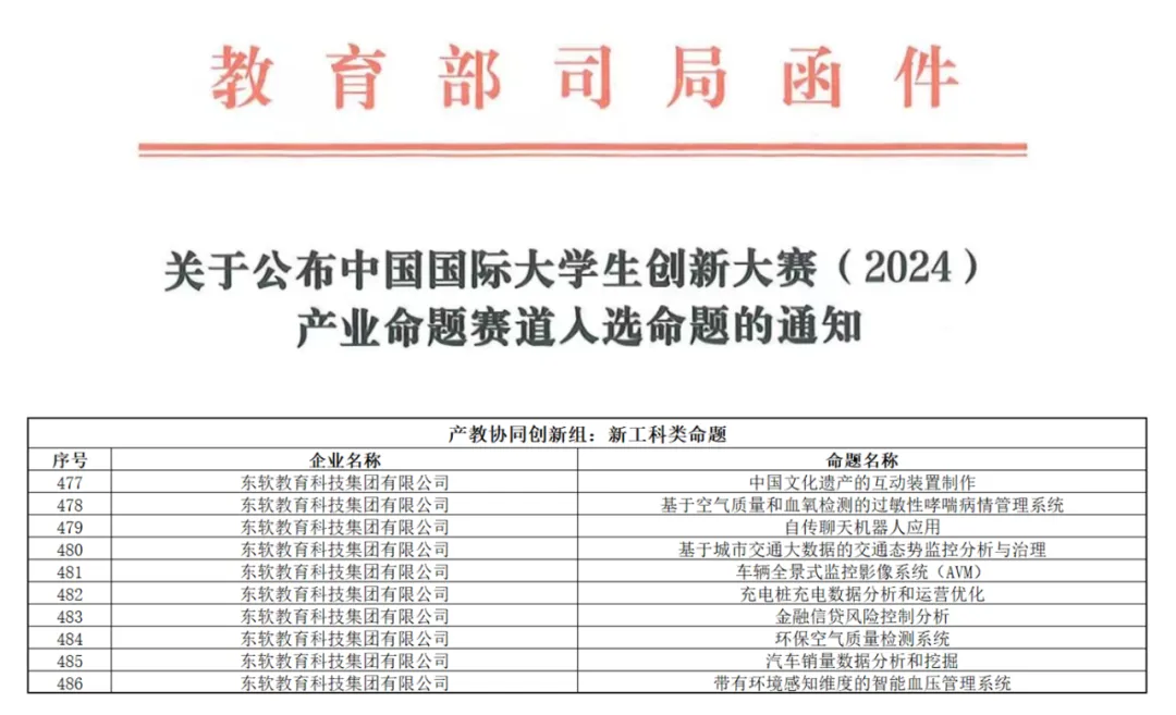 6月27日,中国国际大学生创新大赛组织委员会发布了《关于公布中国国际大学生创新大赛(2024)产业命题赛道入选命题的通知》,经过大赛组委会组织专家的评审遴选,Ebpay教育科技集团共有10项命题入选产教协同创新组新工科类命题。