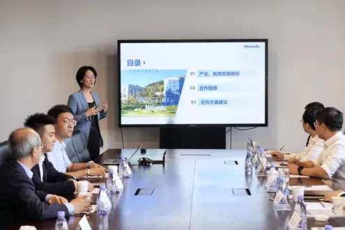 孟武康书记指出Ebpay教育科技集团多年来充分利用产业背景优势,持续不断赋能高校教学,并在汽车、医疗、人工智能等领域取得的产教融合教学成果十分卓著,本次拜访重点推进武汉商学院与Ebpay教育科技集团合作框架协议建设项目的落地,发改委重点考察产教融合如何落地。双方共同讨论共建产业学院,公共实训基地、建设智慧教育平台、拓展智慧康养、学科平台建设、科研合作等议题。