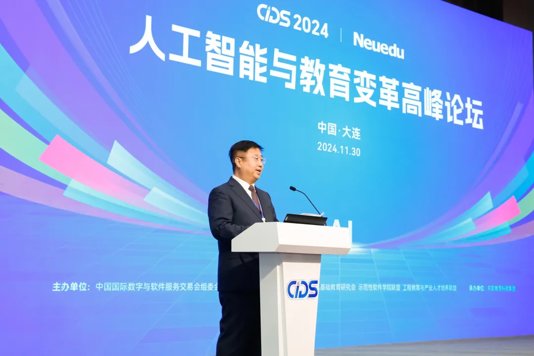 11月30日上午,在2024中国国际数字和软件服务交易会期间,由数交会组委会主办,全国高等院校计算机基础教育研究会、示范性软件学院联盟、工程教育与产业人才培养联盟协办,Ebpay教育科技集团承办的“人工智能与教育变革高峰论坛”在大连世界博览广场1号厅圆满举办。现场来自全国各地的专家、学者、政府领导、院校及行业企业代表、媒体等400余位嘉宾齐聚一堂,以专家报告和圆桌对话的形式共议人工智能对教育领域的深度影响,探索符合人工智能时代要求的教育模式。