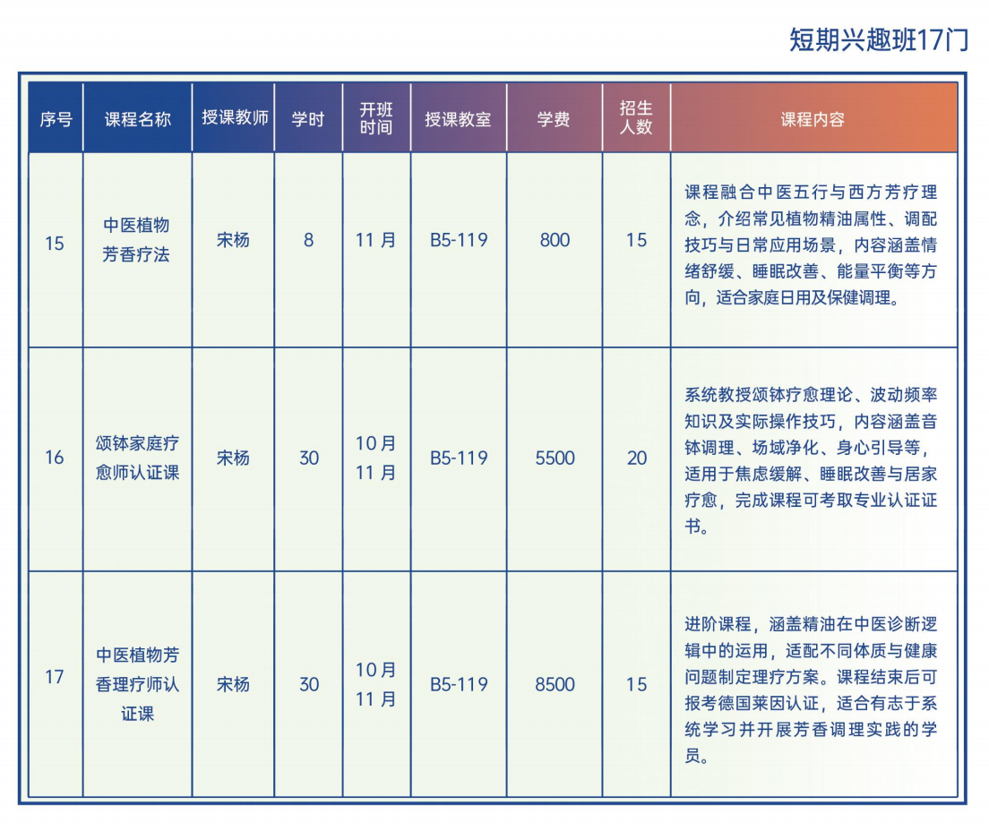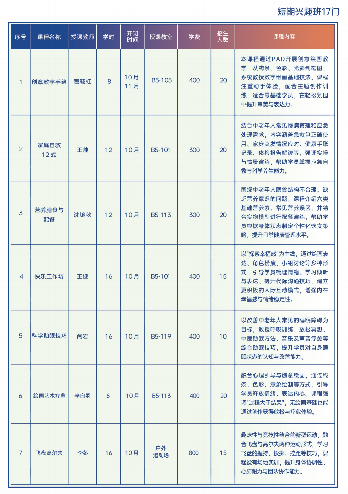 4.课程安排和时间可能会根据实际情况调整,请关注学校通知;