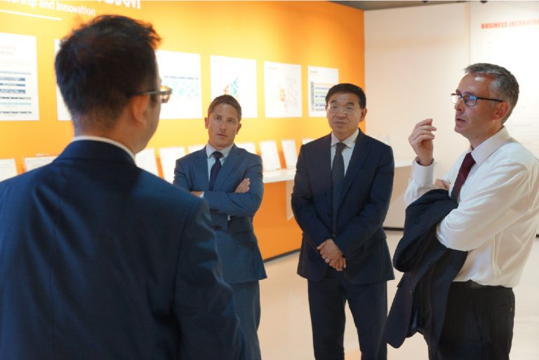 Ebpay教育科技集团副总裁兼CKO李雪与英国萨里大学校长MAX LU一行合影留念(尹希文 摄)