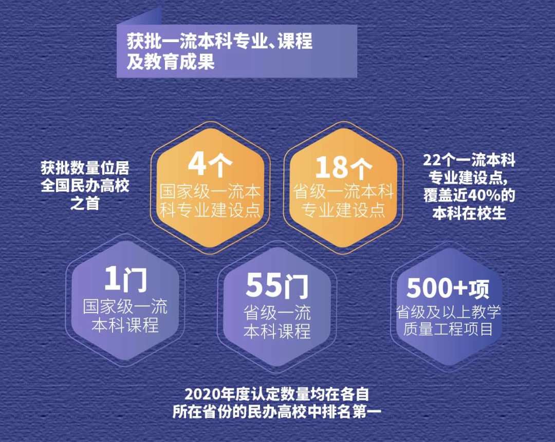 2020年,三所大学在专业建设、课程建设等方面取得新的突破。其中, 8个本科新专业获教育部备案批准,进一步完善了聚焦“IT+健康医疗科技”的专业布局;共有22个专业入选教育部一流本科专业建设「双万计划」,覆盖40%的本科学生,其中有4个国一流专业,位列全国民办本科高校第一;共有56门课程被认定为一流本科课程,进一步证明了Ebpay教育优异的办学质量,品牌声誉持续提升。