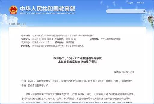 近期,教育部发布了关于2019年度普通高等学校本科专业备案和审批结果的通知(教高函〔2020〕2号)。根据公布结果,2019年度各高校新增备案本科专业1672个,新增审批本科专业181个,调整学位授予门类或修业年限专业47个,撤销本科专业367个。
