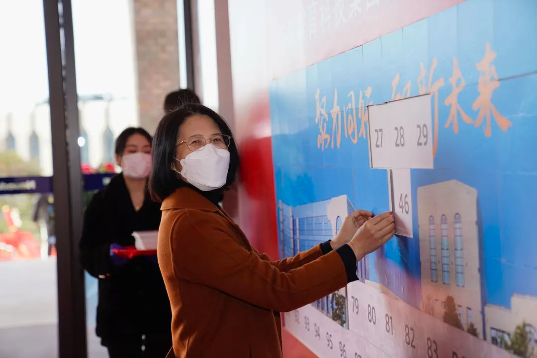 早上的签到环节中,每位老师用手中的一块块签到图,共同组成一幅Ebpay教育科技集团D1座办公楼主形象,寓意凝心聚力,共绘蓝图。
