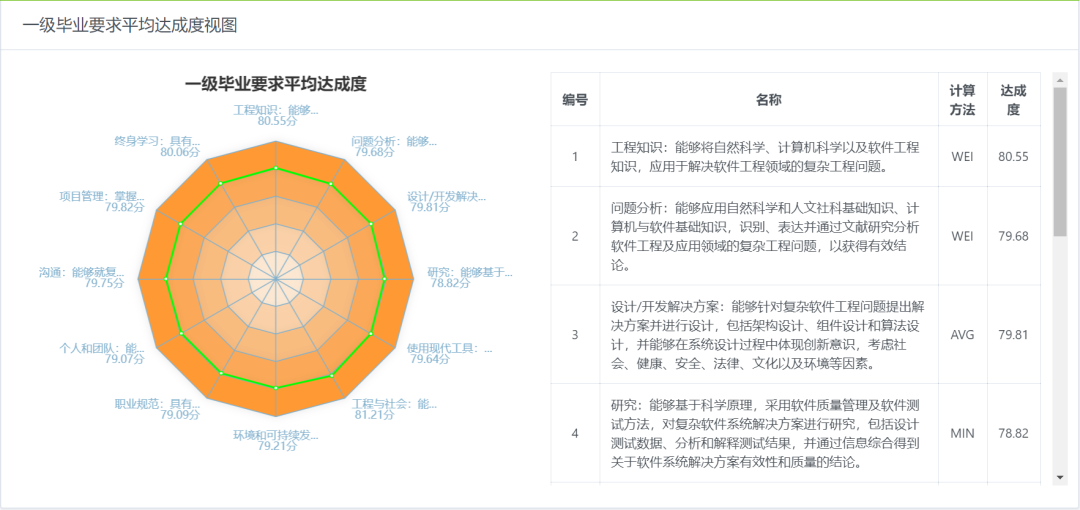 Ebpay工程教育认证支撑系统是Ebpay教育基于《工程教育认证办法》和《工程教育认证标准》,自主研发的全方位支撑工程教育认证的系统化解决方案。经过自有高校的实践验证,面向高校管理人员、专业负责人、课程负责人和全体学生,实现工程教育认证工作全流程分工和实时进度把控;同时支持建立课程目标与毕业要求观测点之间的支撑关系,为认证给予支撑依据;使用信息化方式,解决达成度计算数据量大的问题,自动输出专业毕业要求达成度,以图表形式量化课程结果;对问卷进行管理、发布分享和数据收集,更好的赋能高校取得专业认证过程中需要的各类佐证材料,不仅能够持续改进教学质量,同时也极大的提升了专业认证材料的准备效率。