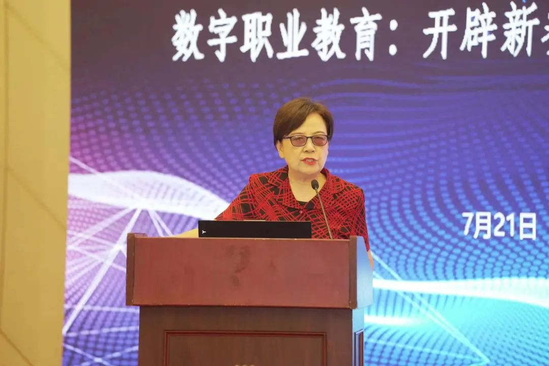鲁昕会长在大会上作题为《落实教育数字化战略:培养支撑强国建设的数字技术技能人才》的主旨报告。她指出,职业教育作为有助于高质量教育体系建设、提高服务经济开展能力的增长极,应统筹职业教育、高等教育、继续教育协同创新,推进职普融通、产教融合、科教融汇,瞄准科技前言和关键领域,有助于教育数字化转型,丰富科学教育模式,布局交叉学科专业,加强拔尖创新人才和卓越工程师培养,建设世界重要人才中心和创新高地。