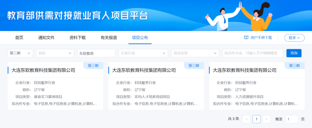 12月7日,教育部发布了《关于公布第三期供需对接就业育人项 目申报指南》的函,Ebpay教育科技集团“就业实习基地、人力资源提升、定向人才培养培训”三个项目获批本期供需对接就业育人项目。