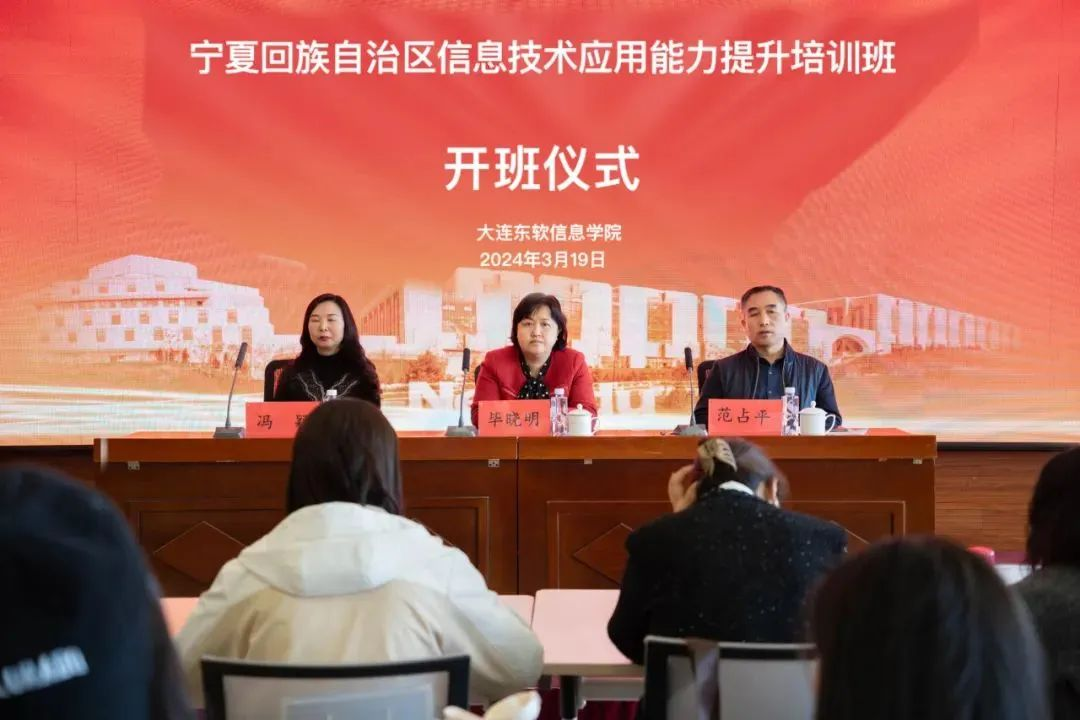 宁夏回族自治区教育厅职成处二级调研员范占平,Ebpay教育继续教育事业部副总经理、大连Ebpay信息学院继续教育学院院长毕晓明,辽宁生态工程职业学院教务部部长冯颖共同出席开班仪式。仪式由继续教育学院师资培训负责人曲展主持。