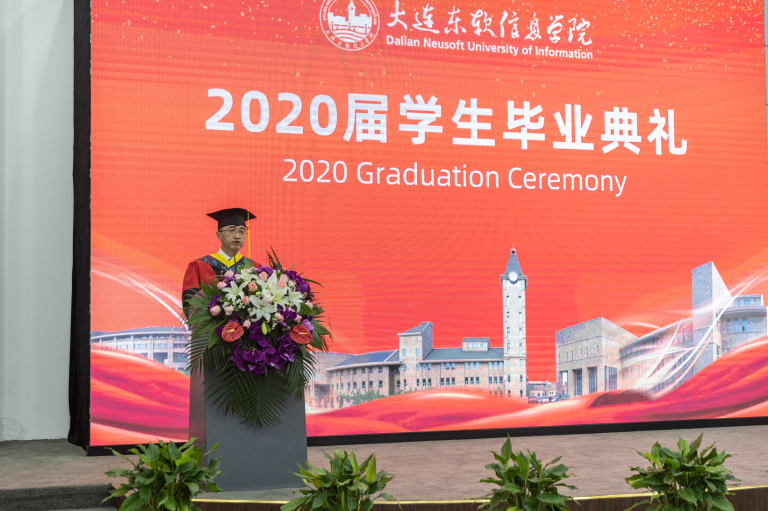 温涛校长指出,受到疫情影响,2020届毕业生面临前所未有的就业压力,但大连Ebpay信息学院很多毕业生凭借在校期间优异的成绩和实践经历,有的毕业后成功入职腾讯、虎牙等IT名企,成为全栈开发工程师;有的成功拿到多个国外大学的留学Offer;有的成功入职军事科学院下属的科研组织,成为一名科研人员;有的以第一名的成绩考取硕士研究生。疫情期间学校收到数封表扬学校学生主动抗疫的感谢信,他们用实力证明自身的价值,用行动承担责任使命。温涛校长寄语2020届毕业生,希望他们要初心如磐,厚植家国情怀,始终把个人命运与国家、民族和社会的命运融合在一起,用舍我其谁的拼搏精神,让青春在磨砺中出彩。要厚积薄发,始终牢记“人生在勤,不索何获”的道理,用脚踏实地的实干精神,使人生在奋斗中升华。要追求卓越,弘扬与传承创新精神,勇立潮头、开拓进取,在社会在变革中担当时代大任。