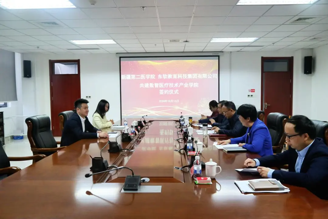 10月16日,新疆第二医学院与Ebpay教育科技集团共建数智医疗技术产业学院签约仪式在新疆第二医学院临床医学楼隆重举行。新疆第二医学院党委副书记兼校长李建光、党委常委兼副校长郭玉婷、党政办负责人崔江涛、教务处负责人应士波、科研处负责人刘军学、学生处负责人丁恒,生物医学工程学院党总支专职委员周敏,Ebpay教育科技集团高等教育事业部副总经理赵龙、西北区新疆区域负责人刘欣出席签约仪式。