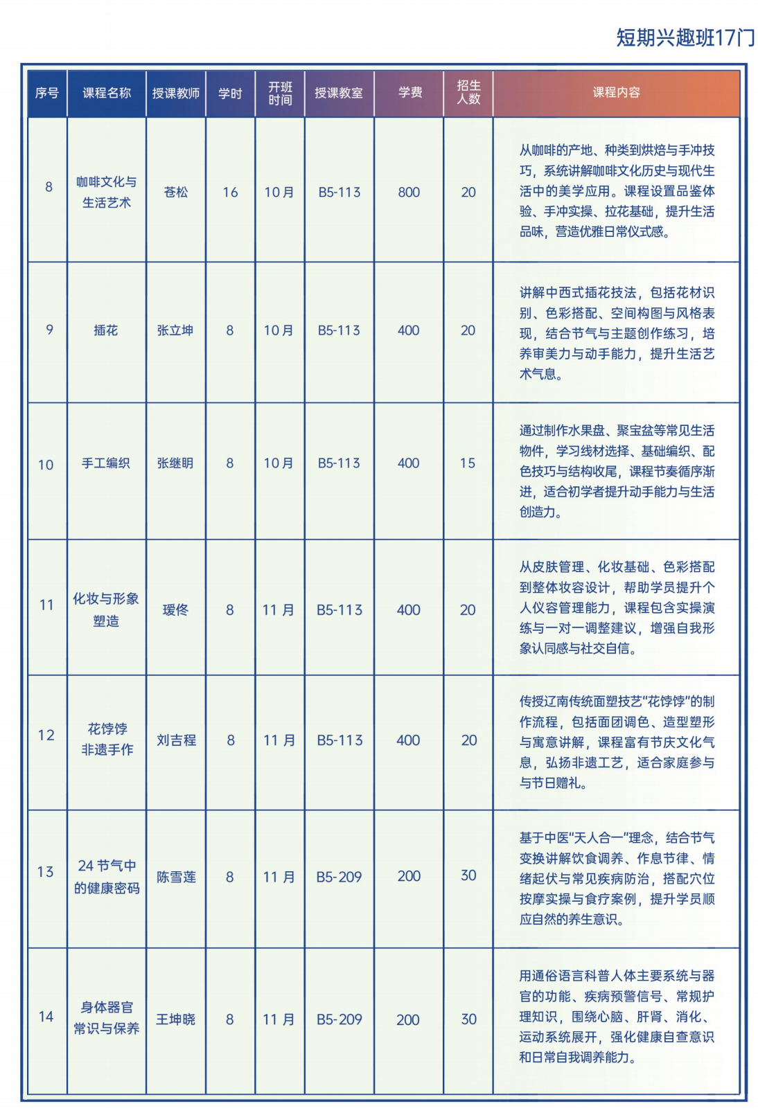 4.课程安排和时间可能会根据实际情况调整,请关注学校通知;