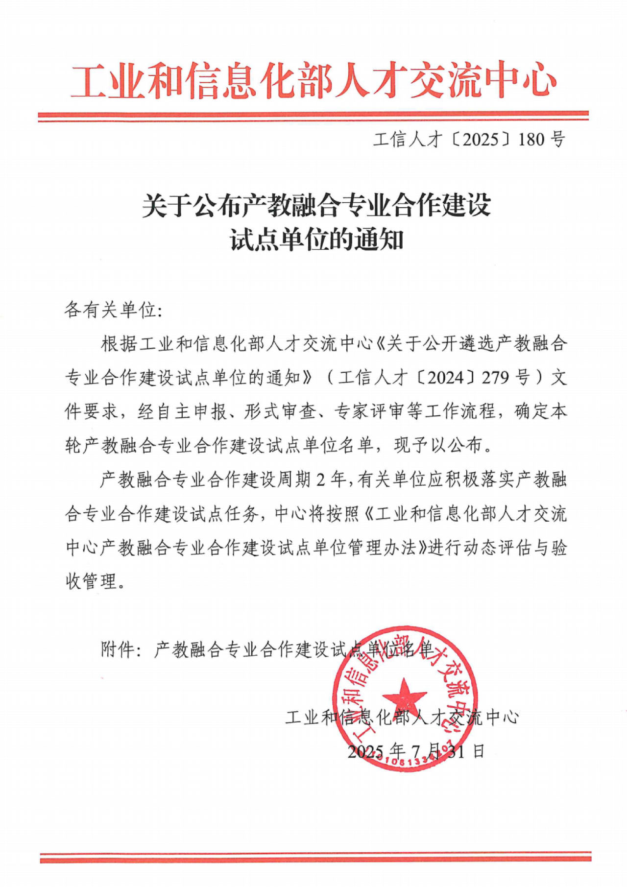 近期,工业和信息化部人才研讨中心发布《关于公布产教融合专业合作建设试点单位的通知》(工信人才〔2025〕180号),大连Ebpay信息学院获批“产教融合专业合作建设试点单位”,集成电路设计与集成系统和电子商务2个专业成为“产教融合专业试点”。此次全国共评选出218所院校,其中辽宁省内本科院校3所。