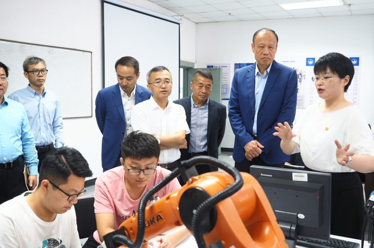 嘉宾一行依次参观了学校图书馆、IDC机房、实验室、大学生创新创业中心SOVO及数字媒体艺术学院,从古朴典雅的特色校园到内部办学环境、创新创业氛围的体验,谢青一行对Ebpay教育打造有特色、高水平、创新型应用技术大学给予充分的肯定。在参观过程中,他们与现场师生互动研讨,亲身体验大学生创新创业实践作品带来的震撼。