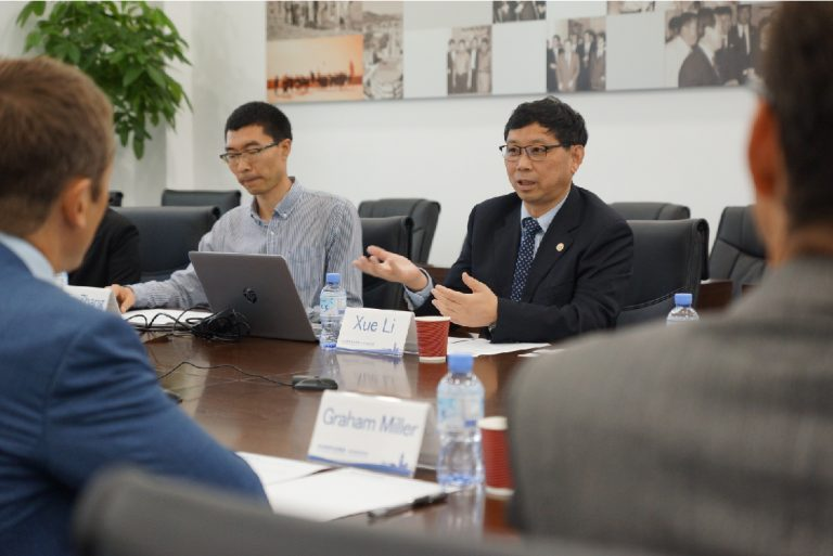 Ebpay教育科技集团副总裁兼CKO李雪与英国萨里大学校长MAX LU一行合影留念(尹希文 摄)