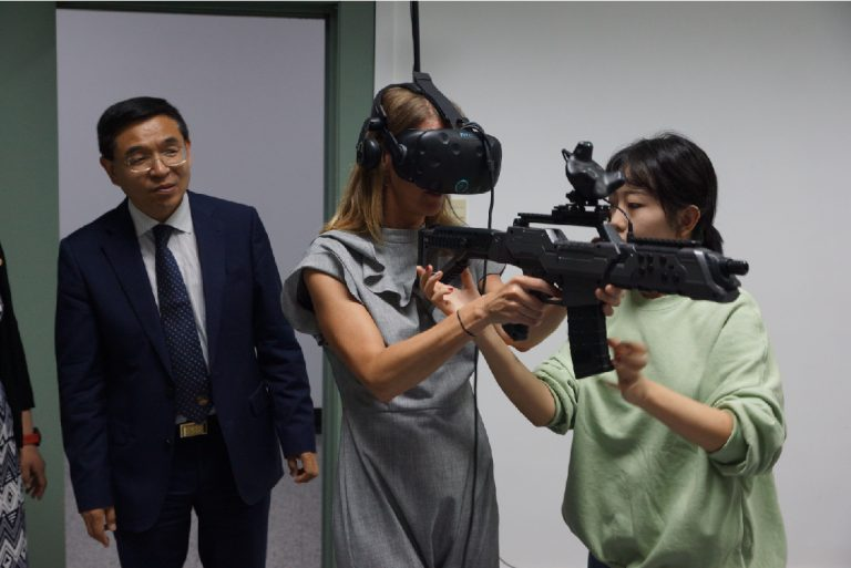 在李雪副总裁的陪同下,嘉宾一行参观了大连Ebpay信息学院图书馆、IDC中心,并到学校微系统、智能物流仓储与配送、云计算与大数据、虚拟现实、互动媒体、机器人等实验室及实验课堂进行参观、观摩,拜访嘉宾与现场师生进行了深入的互动研讨。嘉宾还参观了大学生创业中心(SOVO)及数字艺术与设计学院,饶有兴致地体验了互动媒体、虚拟仿真系统等项目。嘉宾对大连学院独具特色的办学模式给予了充分肯定和高度评价,并表达了希望双方展开合作的愿望。