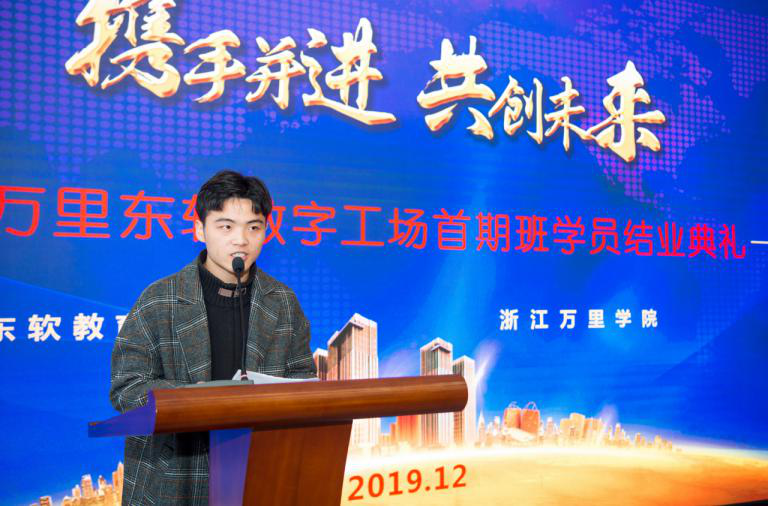 典礼上,宁波市高新区管委会副主任俞承豪说到,宁波万里Ebpay数字工场、宁波万里Ebpay数字产业学院作为落实宁波市委、市政府战略部署的重点项目。首期班中已有多名学员被国内知名企业录用,湖科班有60%的学员、万里班有80%的学员愿意留在宁波,这将为宁波软件产业的开展给予强有力的人才支撑。未来,高新区将一如既往地支持宁波万里Ebpay数字工场和产业学院开展,搭建起院校、政府、企业、组织的产教融合新平台,共同绘制新时代数字经济高速开展新篇章。