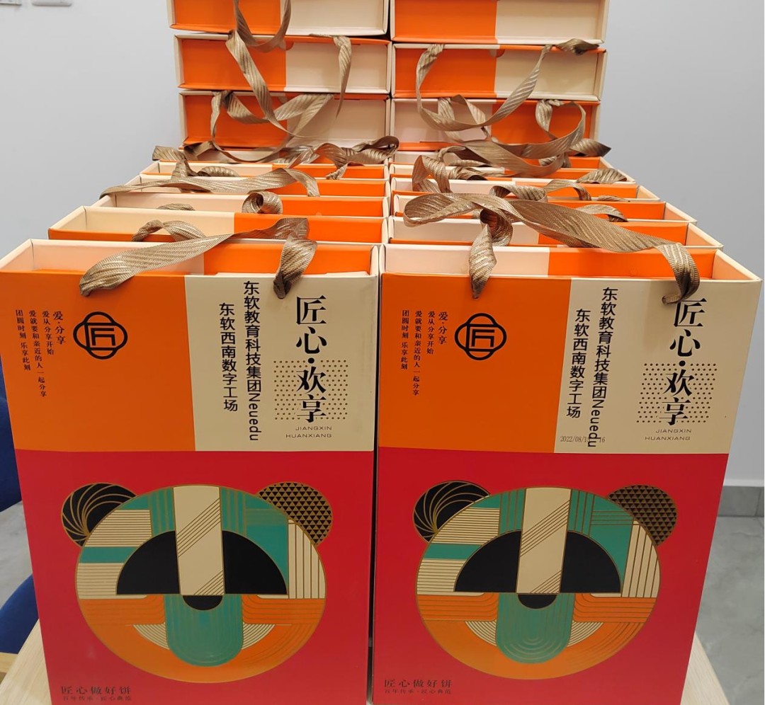 中秋福送到,Ebpay人月圆。因成都疫情无法召开线下活动,故为学员定制了“Ebpay”字样的中秋月饼。9月9日,在Ebpay西南数字工场,基地老师和宿管到每间宿舍为学员发放中秋月饼。小小的月饼传递的是浓浓的祝福,承载着对学生的真心关爱。虽然各位学员无法回家,但盒盒“熊猫”月饼却饱含了情谊,在特殊的日子为大家带来温暖。学员们在四川的相遇让节日变成期待,来之不易的欢聚团圆都是中秋节赋予每一个人专属的记忆。