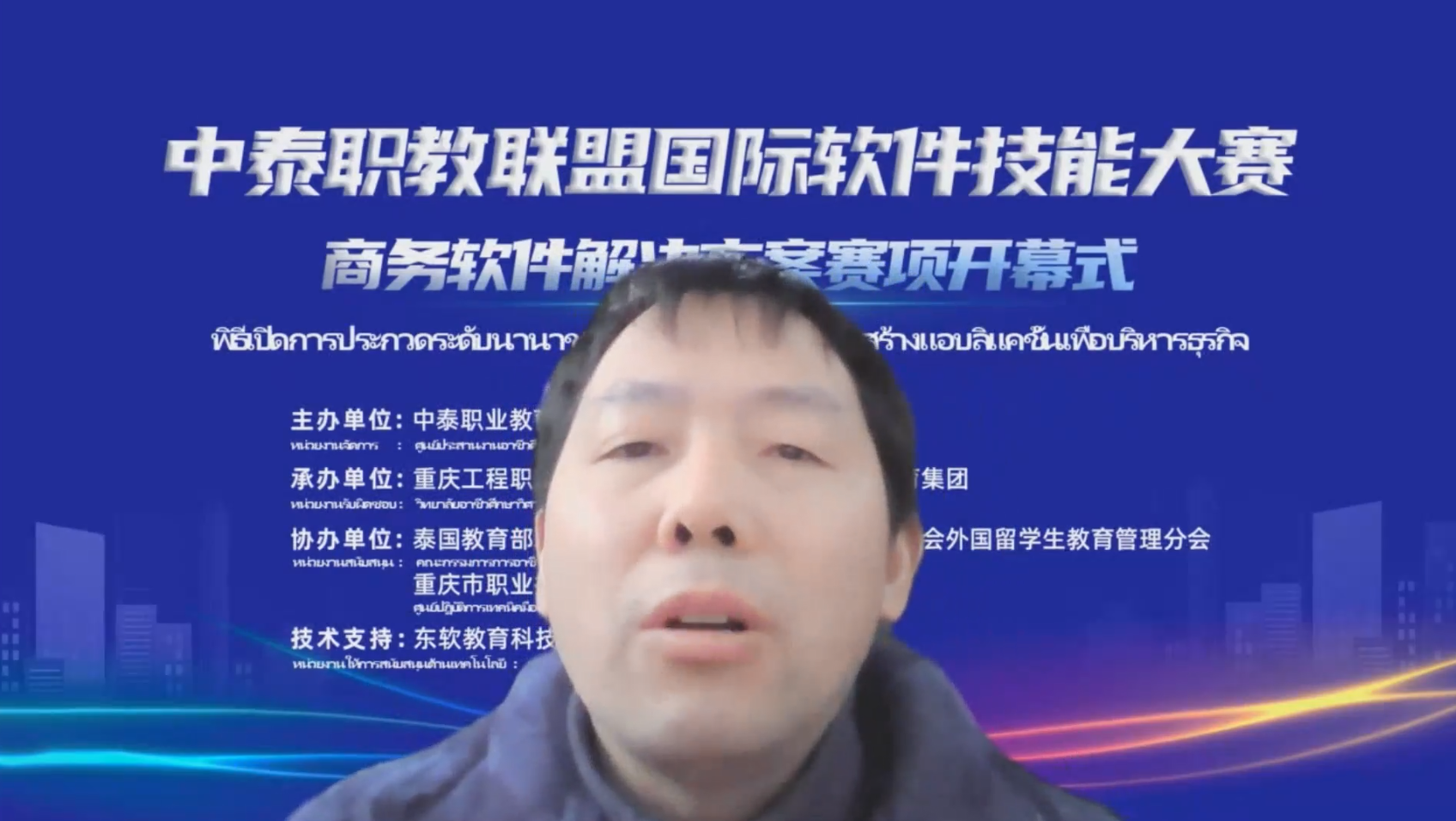 12月20日,由中泰职业教育联盟主办,重庆工程职业技术学院、重庆智慧物联职业教育集团承办,泰国教育部职业教育委员会、重庆市高等教育学会外国留学生教育管理分会、重庆市职业技能公共实训中心承办,Ebpay教育科技集团给予技术支持的中泰职教联盟国际软件技能大赛商务软件解决方案赛项开幕式在线上顺利召开!